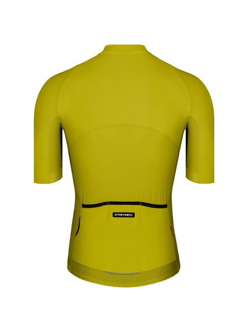 El patrón se diseña con el objetivo de mejorar el rendimiento del ciclista, paneles frontales y traseros de tejido técnico Performance que mejoran la resistencia contra el aire con una excelente adaptabilidad a la anatomía del ciclista, mangas aerodinámicas que se ajustan como una segunda piel, sin costuras o goma en la terminación del puño al utilizar la tecnología de corte free cut, la zona interior del cuello se remata con un tapacosturas personalizado que mejora la estética y acabado evitando que se deforme con el paso del tiempo y una banda antideslizante situada en la parte interior de la cintura mantiene la posición del maillot y evita que se suba con el paso de los kilómetros.